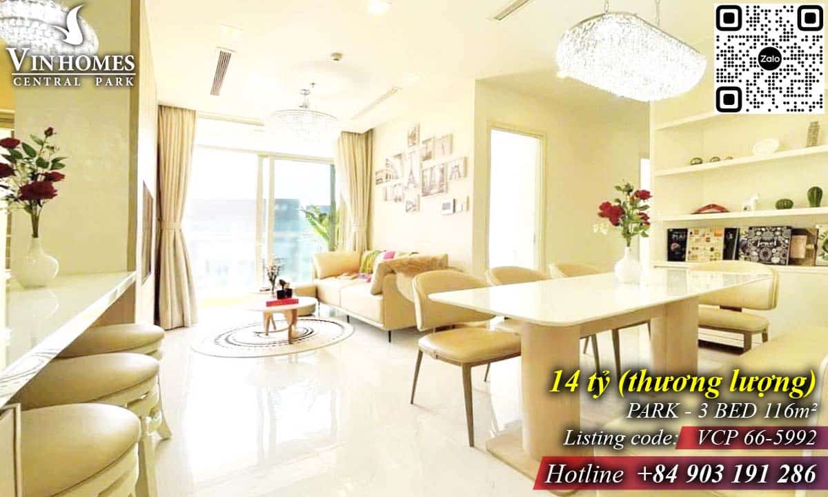 Bán căn hộ Vinhomes Central Park có thiết kế 116 m² diện tích rộng rãi, hướng view sông Sài Gòn – công viên ven sông tầm nhìn trải rộng không khí vui tươi. Căn hộ Vinhomes Central Park 3 phòng ngủ, 2 phòng tắm & WC, phòng khách, khu bếp. Căn hộ cao cấp Vinhomes Central Park tháp Park 3 căn số 07.
