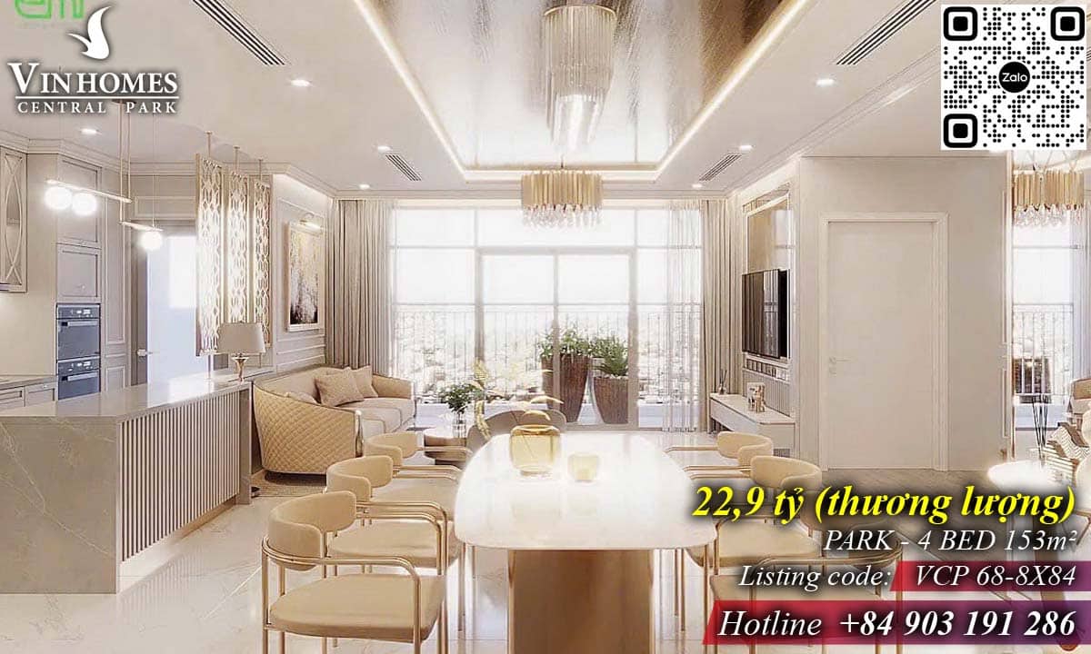Căn hộ bán Vinhomes Central Park ngay block Park 1 căn số 15, phối cảnh tinh tế ban công rộng thoáng. Khu căn hộ cao cấp Vinhomes Central Park lựa chọn tuyệt vời độc đáo bền vững, 4 phòng ngủ, phòng khách, 3 phòng tắm & WC, khu bếp. Căn hộ Vinhomes Central Park diện tích 153 m2, căn hộ hoàn thiện đẹp tự nhiên, view sông Sài Gòn – công viên trực diện hướng nhìn rộng thoáng lãng mạn tuyệt vời.