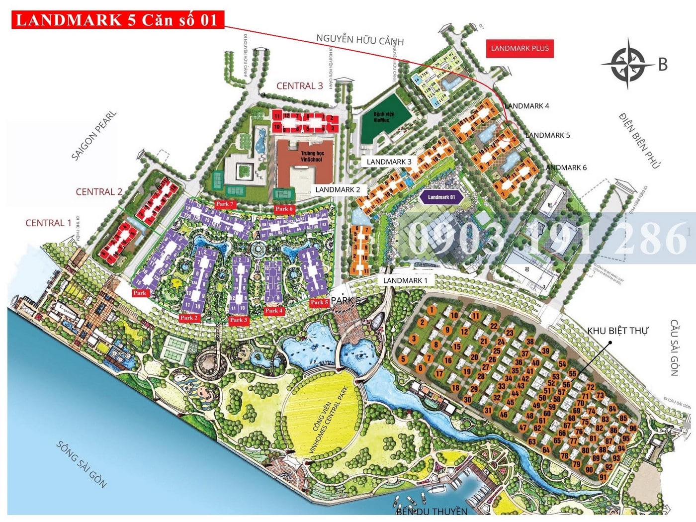 Giá chào bán tham khảo 3 phòng ngủ block Landmark 5 căn số 01 – Cập nhật 12/2025: